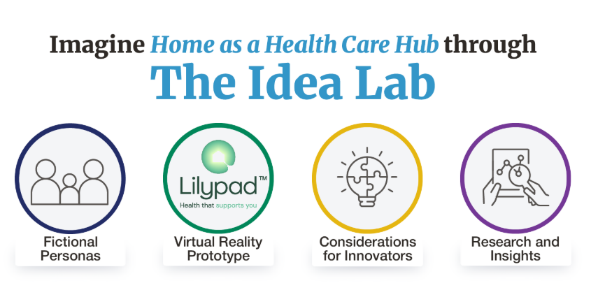 The Idea Lab features a virtual reality prototype named Lilypad, which gives users an immersive experience inside various affordable homes of representative people living with diabetes, and will provide a realistic look into the challenges and barriers people face navigating medical conditions in their daily lives. The Idea Lab also includes insights from patients, caregivers, providers and experts, tours of different types of affordable housing environments, and highlights landscape research into design opportunities ripe for innovation.