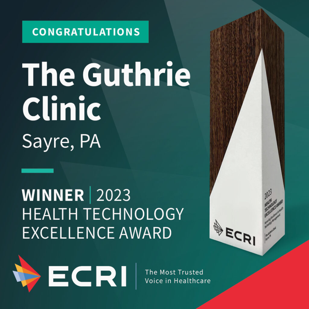 ECRI recently named the Guthrie Clinic in Sayre, Pennsylvania, as the winner of its 2023 Health Technology Excellence Award. ECRI’s annual award honors a member facility for implementing an exceptional initiative to improve patient safety, reduce costs or otherwise facilitate better strategic management of health technology.