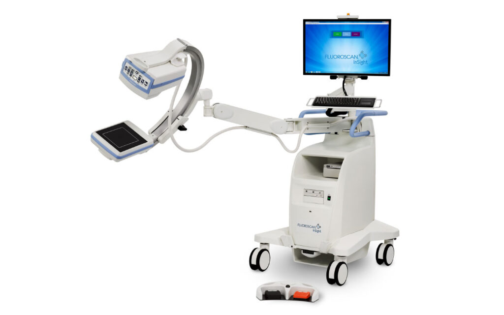 Hologic’s Fluoroscan InSight FD Mini C-arm imaging system is designed for easy positioning, flexibility and convenient mobility. The system features a rotating flat detector that is ideal for imaging long bones and, along with its collimator, enhances surgical positioning. The C-arm is designed with a forward tube source and has a 120-degree range of motion, both forward and backward, for excellent maneuverability and flexibility. Additionally, the Fluoroscan InSight FD Mini C-arm imaging system from Hologic offers a Low Dose Rate Option that enables the user to reduce dose rate while still providing clinically equivalent images. The unit also lowers scatter dose by 50% at 30 frames per second. The system can improve workflow as its customizable imaging parameters can be tailored to the preferences of individual surgeons.