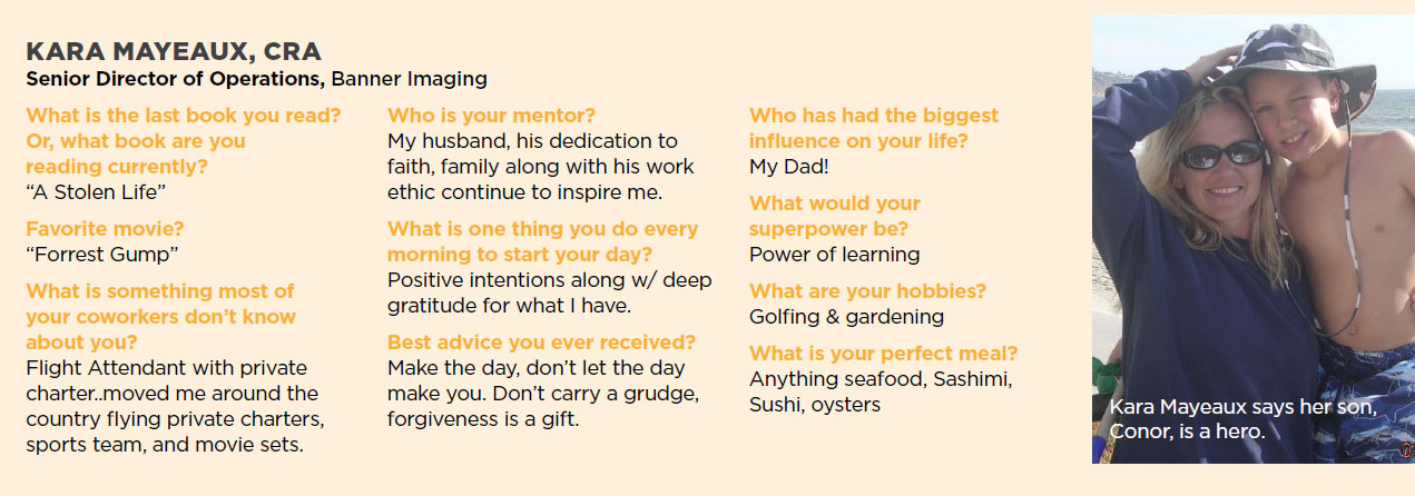 Banner Imaging Senior Director of Operations Kara Mayeaux, CRA, is not one to shy away from a challenge. Her desire to serve in the diagnostic imaging field is just one example of how she takes on difficult situations and transforms them into positives. The bonus, and it is a big one in her eyes, is that her chosen profession empowers her to assist others.
