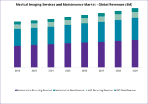 According to Signify Research’s latest report, the Medical Imaging Services and Maintenance market is projected to exceed US$23 billion by 2029. This growth is driven by increased uptake for services in key modalities such as MRI, CT, and Interventional X-ray systems, which have high maintenance and service contract penetration rates.